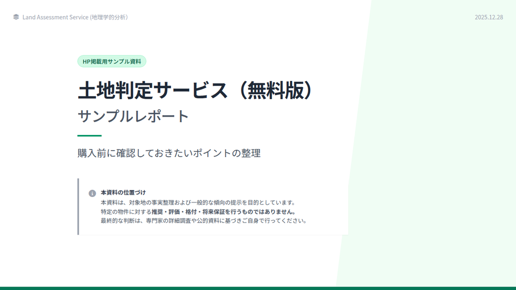 「買っていい土地」「避けるべき土地」を中立に判定。