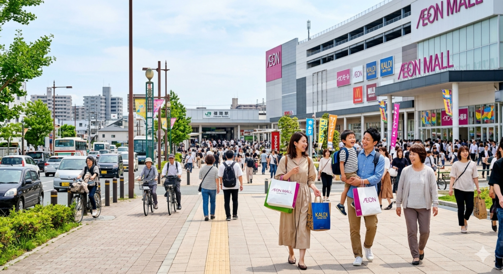 駅周辺には「イオンモール福津」をはじめ、スーパー・ドラッグストア・クリニックが密集しています。車がなくても生活が完結できるほど利便性が高く、忙しい子育て世代には心強い味方です。
