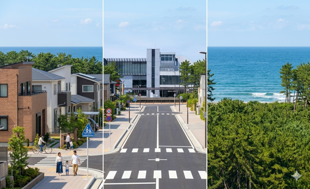 「静かな環境で子育てしたい」「買い物の利便性は譲れない」「海を感じる暮らしに憧れる」など、ご家族の優先順位によって正解のエリアは変わってきます。それぞれの個性を深掘りしていきましょう。