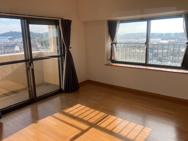 角部屋のため複数の窓から眺望を楽しめます。日差しも十分に入ります(2026年2月撮影)