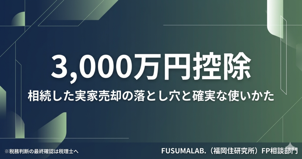 相続した実家を売るとき、知っているだけで最大400万円変わる「3,000万円特別控除」。知人への貸し出しや建物付き譲渡が落とし穴になる理由を、FP・宅建士の視点で図解つきで解説します。宗像・福津・古賀エリア対応。